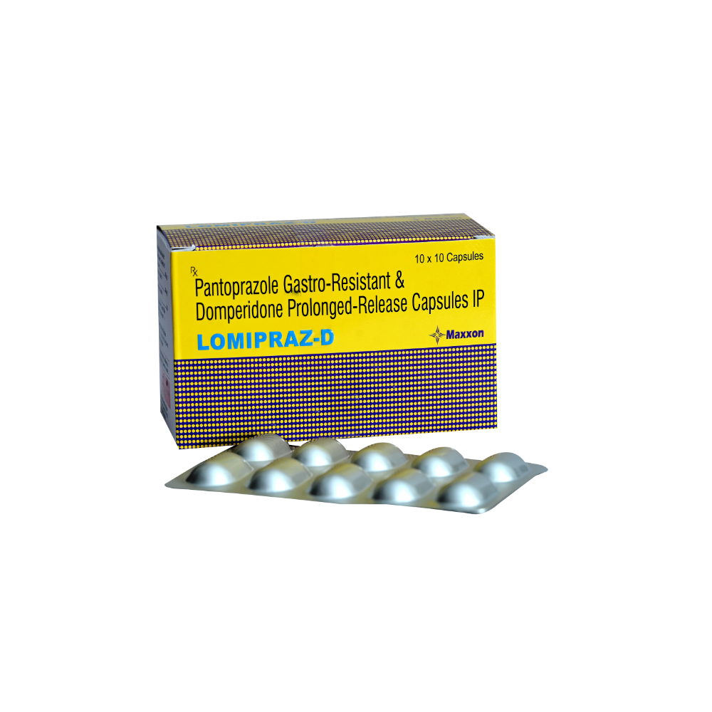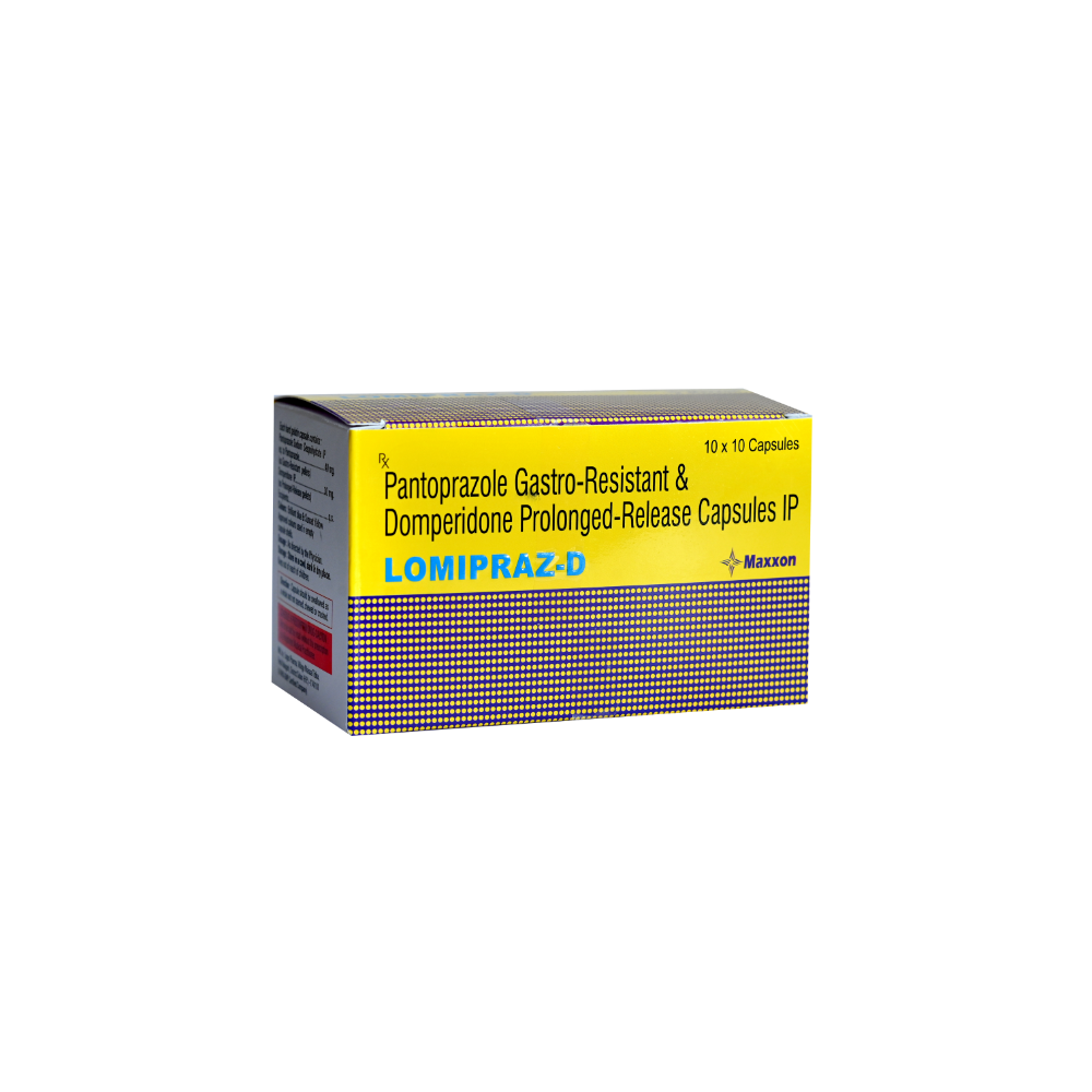 Lomipraz-D Capsule is combination of two medicines, Pantoprazole and Domperidone. Domperidone is a prokinetic and anti-nausea agent that helps to treat indigestion. On the other hand, Pantoprazole is a proton pump inhibitor that reduces the excess stomach acid formation by blocking the actions of an enzyme (H+/K+ ATPase or gastric proton pump). Lomipraz-D Capsule is a medicine used to treat peptic ulcers and gastroesophageal reflux disease (GERD). Lomipraz-D Capsule prevents the release of excess amount of acid in the stomach and relieves symptoms of food pipe lining inflammation (esophagitis), and gastroesophageal reflux disease (GERD), or heartburn.